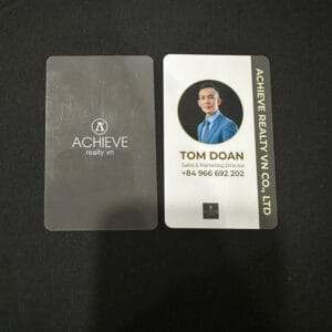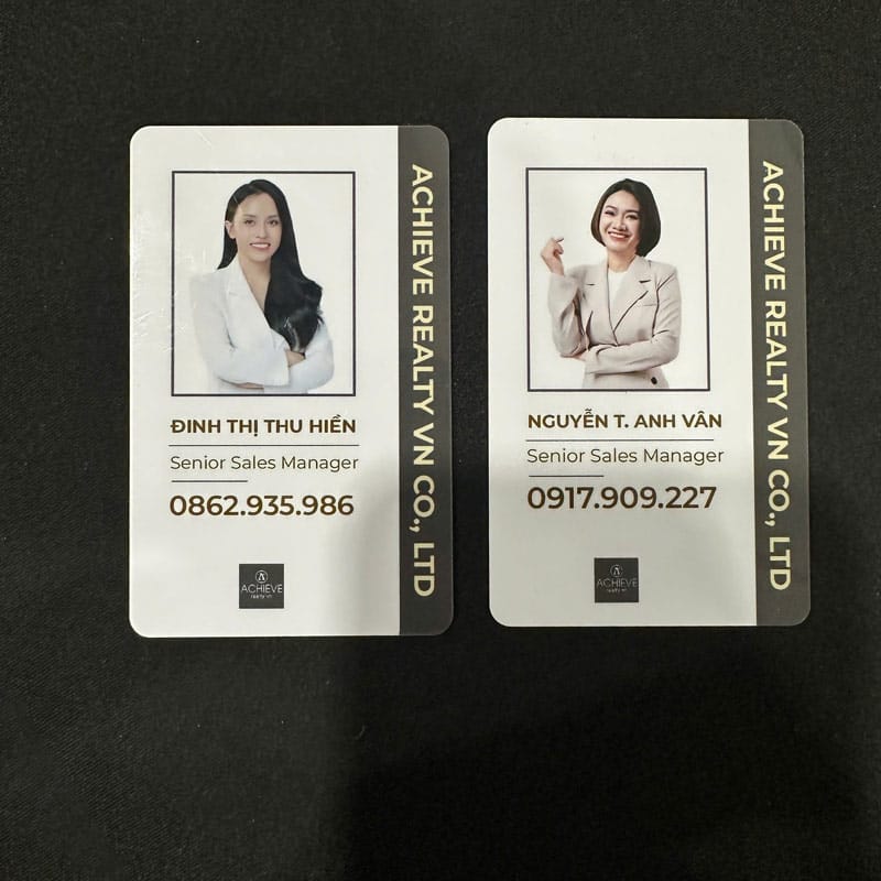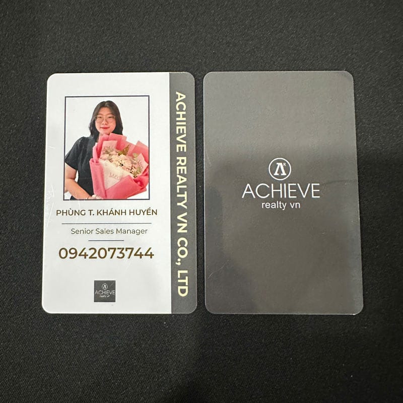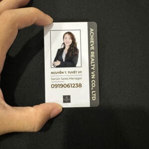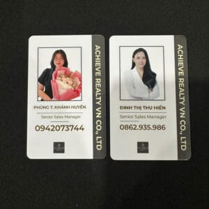 ✔ Chất liệu nhựa PVC cao cấp: Thẻ được in trên nền nhựa PVC cứng hoặc dẻo, giúp thẻ có khả năng chống nước, chịu va đập tốt và không bị bong tróc trong quá trình sử dụng. Đây là chất liệu lý tưởng để sử dụng trong thời gian dài.
